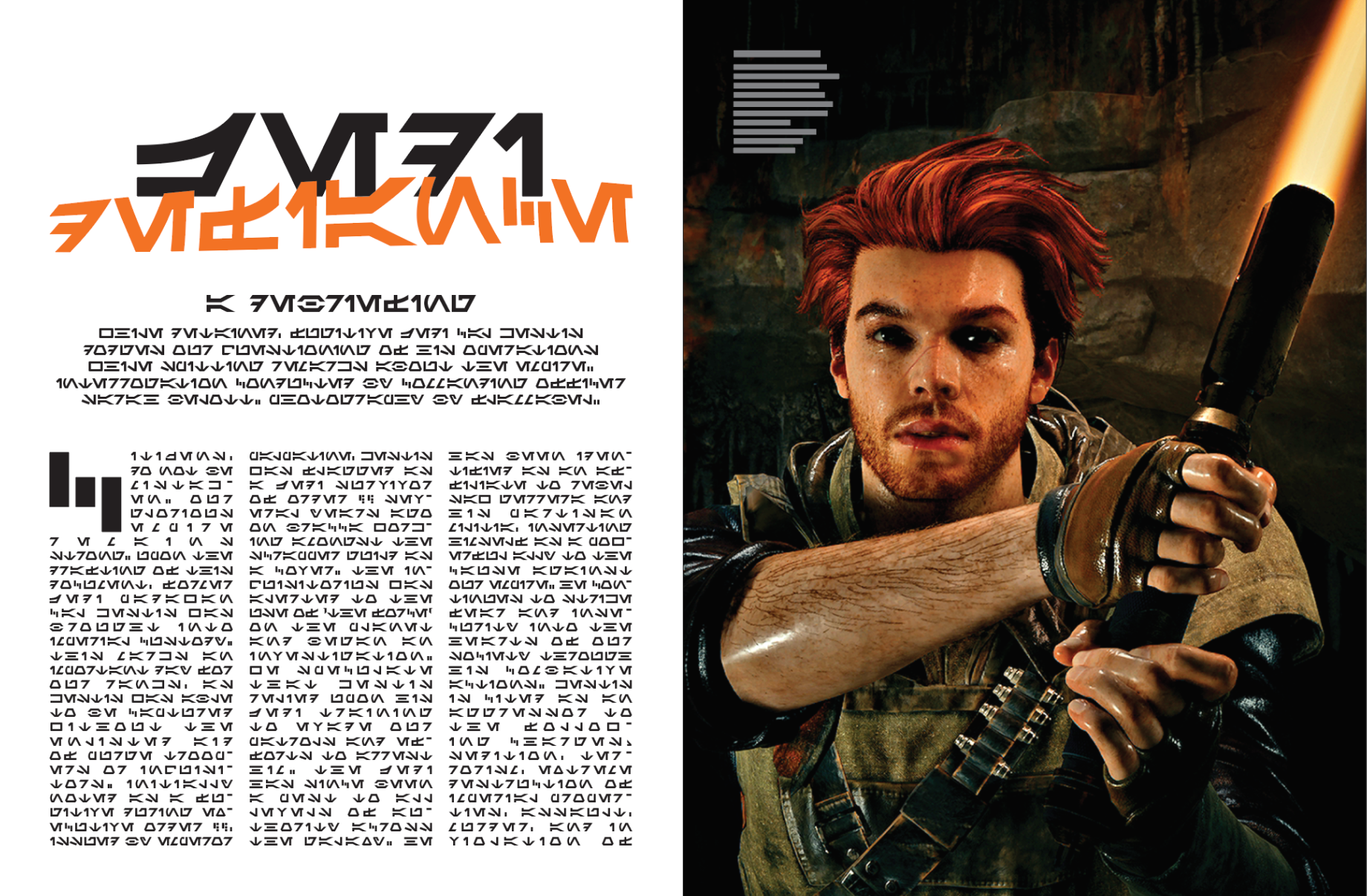Of course, to mimic the Vogue structure and feel, I needed to look at Vogue material. For the Aurebesh version, I surrounded myself as much in-universe graphics that I could. The bulk of the graphics came directly from Jedi: Survivor, which aligned with the narrative I wrote.
